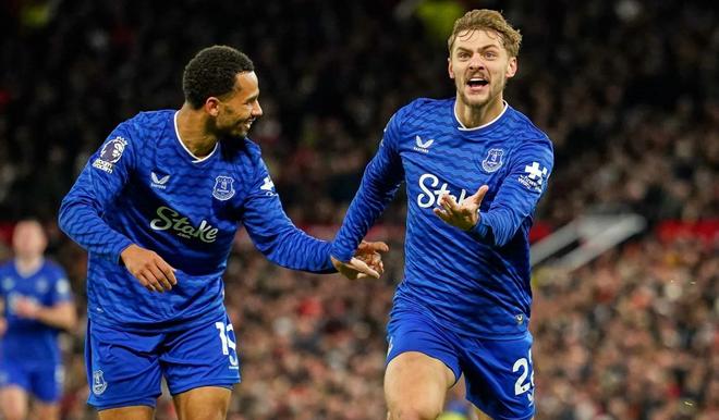 比赛第29分钟,埃弗顿从曼联的双后腰之间打进后卫线身前,霍尔在扛着身后的布鲁诺之后,一个变向就晃过了约罗,用自己从来都不擅长的右脚送出世界波: