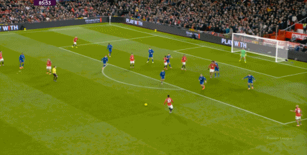 然而,比赛的局势早已被埃弗顿的策略所决定,哪怕换上了芒特,对手也不会给你多少在广阔空间里自如联系弱侧的机会,所以到了下半场,尤其是在埃弗顿体能还能维持的时候,曼联大部分的进攻选择只能是传中: